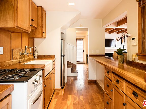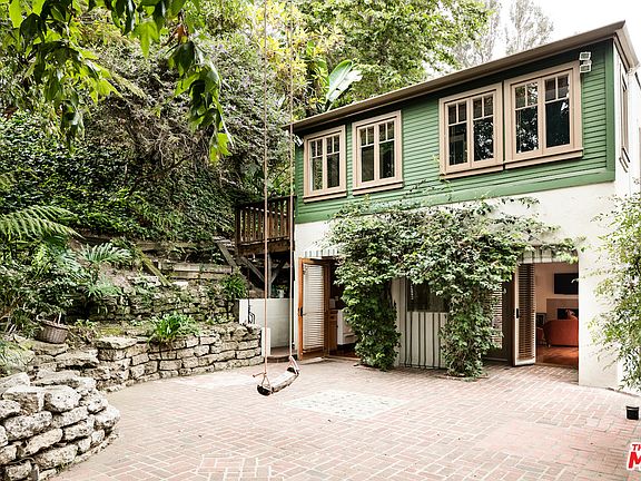 Accessed by a private bridge across the Rustic Canyon Creek blending into the mature greenscape, lies a charming, storied, Spanish house built in 1924. The primary level offers all the entertaining areas, ordained by the fireplace & hrdwd floors, is centered around the open kitchen facing the interior & exterior space through multiple French doors. On the upper story there are two bedrooms plus a romantic family style bathroom all connected by a "great multipurpose" room. From both levels there is easy access to coveted outdoor areas immersed into the surrounding borrowed space, providing the feeling of privacy & remoteness. The sound of the natural spring water running down the creek towards the Pacific Ocean near by adds to this peaceful location.