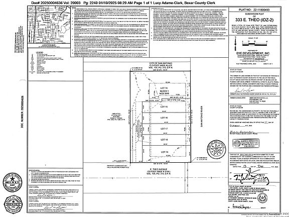 Discover a rare opportunity along the San Antonio River Mission Reach. This vacant, waterfront land at 333 E. Theo is located along one of many trailheads on the river's 8-mile linear park featuring over 16 miles of continuous, naturalized trails. A talented local team has completed an award-winning, permit-ready project design for this site. IDZ-2 zoning for 8 residential units is currently in place, and a matching subdivision plat for 6 lots fronting the river has been completed and recorded. This listing includes all six platted lots with entitlements documentation and supplemental information available on request. The site is just downstream from the beautifully-executed Confluence Park, and directly across the river from Concepcion Park, which includes a public pool, playgrounds, sports fields, and a variety of public programming. Walk, ride, or paddle the river through San Antonio's vibrant cultural core and downtown area to enjoy miles of scenic river trails, lush parkland, and vibrant public art. Or, simply wet a line somewhere along the river and relax. This property offers a unique opportunity where nature, design, and community converge in a major metropolitan city. All offers considered, bring your vision to the river.
