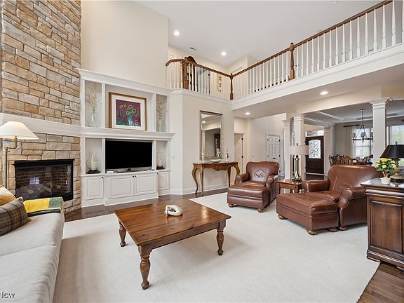 Located on a cul-de-sac you will be wowed the moment you enter through the stunning custom-built front door. The library/office with built in custom cabinets is on the right and large dining room with tray ceiling is on the left. This home has great attention to detail with high ceilings, hardwood floors tray ceilings and crown moldings throughout. The great room is filled with natural light from the 2 story-wall of windows. It also has a 2-story stone wall gas fireplace and gorgeous built-in cabinets. The gourmet kitchen has custom cabinets, island/breakfast bar with granite counters and stainless top of the line appliances, including Sub Zero refrigerator, double oven, microwave drawer and 5 burner gas stove. The first-floor master is lovely with loads of windows, 2 large his and hers closets, both with custom shelving. You will adore the master glamour bath with a double bowl granite vanity, tiled shower, and soaking tub. The custom powder room and large laundry room complete the first floor. Walk up the unique curved staircase to a huge loft with an extra sitting area overlooking the first floor. There are 2 more oversized bedrooms with huge walk-in closets and another custom full bath with granite and ceramic floors. Don't miss the huge recreation room with updated bath, shower and amazing storage rooms. This area offers additional space for working out, games and entertainment. Additional features include nature stone floors plus built in cabinets and sink in the garage. Relax on the large private patio or walk to the community pool, tennis and pickleball courts for evening entertainment. The luxurious indoor and outdoor living spaces make this home truly one of a kind.