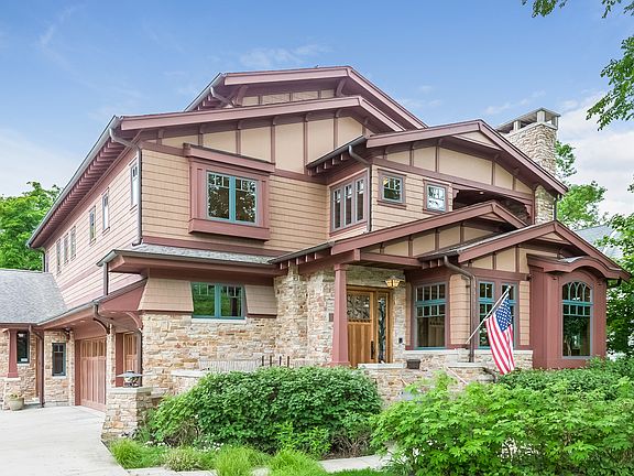 Inspired by the works of renown architects Greene & Greene, pioneers of the Arts and Crafts movement, this custom built stone/cedar house was designed with meticulous attention to detail, expert craftsmanship and aesthetic beauty throughout the 4 finished floors. Ten foot ceilings and quarter-sawn white oak floors, trim, and doors define the feel of the numerous living spaces including the formal living and dining rooms and gorgeous turned staircase. The spacious kitchen boasts exceptional cabinetry, ample breakfast island, high end appliances, and handy butler's pantry. The bright breakfast room overlooks the comfy family room. A sunroom offers stunning views of the delightful backyard with blue stone patio, decorative garden shed with built in fireplace, and luscious gardens. A mudroom, 5th bedroom/office and full bath complete the 1st floor. The second floor hosts 4 en suite bedrooms, including the master, all with attached baths and walk-in closets. Two outdoor roof terraces provide views of the lovely surrounding neighborhood. The 3rd floor bonus room offers great flex space with a room plumbed for an additional bathroom. The finished basement features an expansive 2nd family room, with wet bar and temp-controlled wine cellar, sitting room with fireplace, music room, workout room, and 6th full bathroom. Situated on a beautiful landscaped lot across from an Olmsted park, this unique property is in walking distance to Metra, Riverside's historic downtown and feeds into highly ranked School Districts 96 and 208. Be assured that this superior home will please the most distinctive buyers!