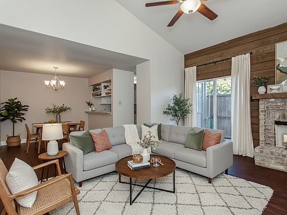 Location, location, location. Nestled amongst giant oak trees and very well-maintained grounds, this charming 1-bedroom brick condo is located 8 minutes from UTD, 5 minutes from 2 major hospitals, 3 minutes from the 75, 11 minutes from NorthPark and 10 minutes from Sprouts, Target, La Madelaine and so much more. It is a safe and quiet complex offering a beautiful pool an updated clubhouse and covered assigned parking. The exterior was fully renovated last year showing off a new metal roof; new gutters and newly painted siding. The interior features a spacious living area with a vaulted ceiling, abundant natural light and a cozy fireplace. A convenient half bath sits off the living area near the laundry room that includes high quality Maytag appliances. The spacious bedroom has a walk-in closet. The kitchen offers room for a dining set with lots of light and includes a dishwasher. Storage is easy with an exterior closet and an interior coat closet. Upgrades include hardwood engineered flooring