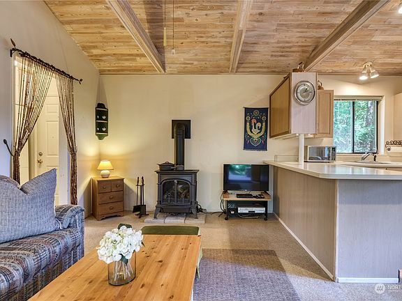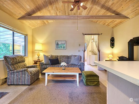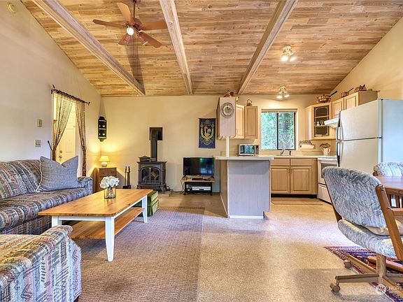 Escape to the serene woods of Point Roberts to this quaint home situated on a private lot, featuring 1 bed and 1 bath. This well-maintained property offers a bright open concept layout with large windows and vaulted ceilings with beautiful wood paneling. Views from every window of beautiful evergreen trees, and a large covered deck that could be enjoyed every season. Don't miss out on this great turn-key property in the heart of Point Roberts. Only 30 minutes from Vancouver, the perfect vacation oasis or all year around home.