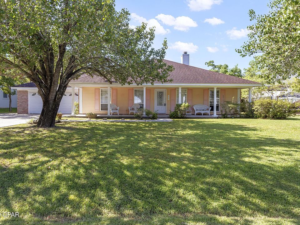 Located in the sought-after Colony Club community, this 3-bedroom, 2-bathroom home offers over 2,500 square feet of living space with a semi-open, split floor plan. Interior features include two spacious living areas, a formal dining room, a breakfast area, hardwood and tile flooring, and abundant natural light. The living room centers around a cozy fireplace, while the kitchen is equipped with granite countertops, stainless steel appliances, a breakfast bar, a pantry, and ample counter and cabinet space. The master suite easily accommodates large furnishings and has an adjoining bath with two walk-in closets, a double vanity, and an extra-large tiled walk-in shower. The 22x27 2-car garage offers space for parking, storage, or projects. The exterior highlights include a welcoming rockin' chair style front porch (Perfect for Holiday Decor), an oversized driveway, and a fenced backyard shaded in areas by mature trees. Set toward the back of Colony Club, this home provides a peaceful retreat close to the beach yet away from the bustle. The community borders West Bay and offers an Old Florida charm with golf course surroundings, plus easy access to shopping, restaurants, Gayle's Trail for walking or biking, and the Conservation Park. Call today for a private preview.