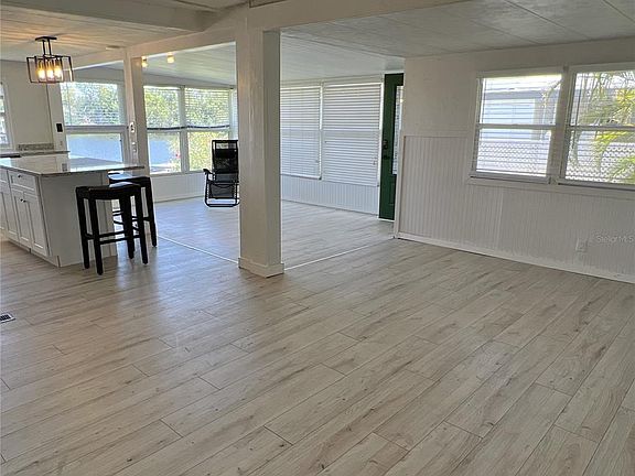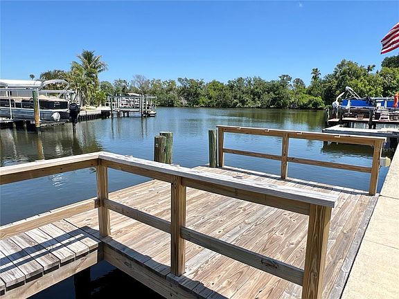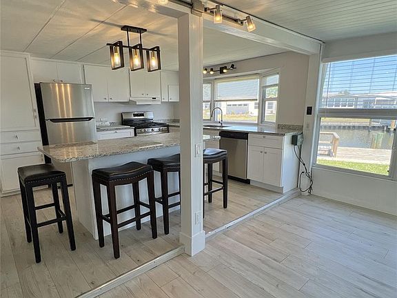 Income opportunity! Waterfront property! Rental agreement in place until June 14, 2027. PROPERTY HIGHLIGHTS: Almost 1,000 sq ft of living space overlooking beautiful wide saltwater canal to Tampa Bay with no bridges. The 2 bed/1 bath home with large dock has been remodeled and includes new kitchen with custom cabinets, new stainless appliances including gas stove, granite countertops and large island to enjoy the views! Large bath with walk-in shower. 2025 luxury vinyl flooring throughout. 2025 mini split and window A/Cs. Attached utility shed with washer and dryer. RENTAL INCOME of $1650 per month to June 14, 2026, then increases to $1700 per month to June 14, 2027. COMMUNITY INFORMATION: Home is located in the premiere 55+ community of Americana Cove located only 10 mins to downtown St. Petersburg, minutes to 4th St. shopping, grocery and restaurants and 15 mins to two airports. Monthly maintenance fee of $380 includes water/sewer/trash/lawn mowing/24 hr manned gate/private streets/seawall maintenance and all amenities including heated pool, clubhouse, fitness center, billiards, two private boat ramps and kayak launch and so much more! Price includes share for the lot and ownership in the co-op. Management requires background/credit check. Proof of funds with contract. This is the investment opportunity you have been searching for!