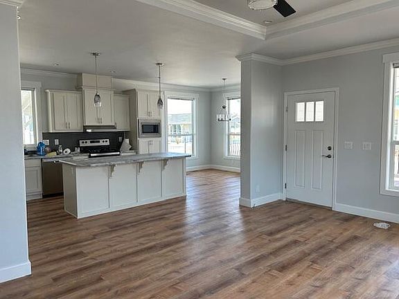 - Ceiling Fan(s), Double Vanity, Granite Counters, Kitchen Island, Laminate Counters, Open Floorplan, Primary Downstairs, Shower/Tub Combo, Walk-In Closet(s)