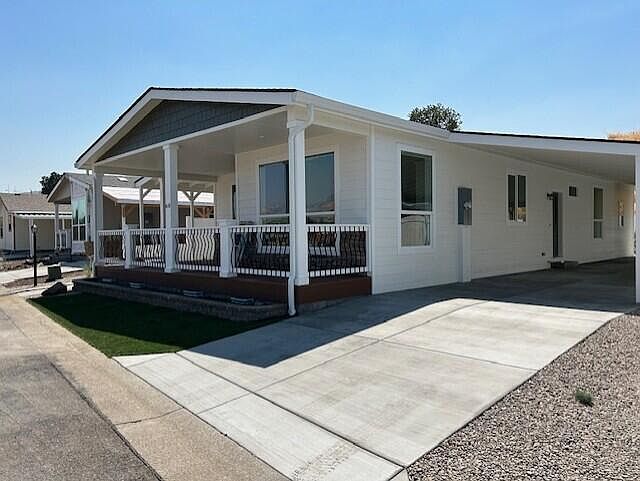 Here's a new listing #60 in popular Mountain View Estates, a 55+ community. Mountain View Estates is still owned by the local family that developed it in 1987. 21 homes of the 164 homes survived the Alameda Fire of 2020. The park is being restored & is now welcoming new and returning residents to this vibrant community. There's a new dog park and mailbox kiosk with parking at the entry. This brand-new Skyline 3 bedroom, 2 bath home is just the right size. A front porch makes taking in the views a pleasure. The large main bedroom runs across the back of the home. Double vanity in the bathroom with a step-in shower and soaking tub. The kitchen & living area are in the front with views of the neighborhood. There are plenty of cabinets & counters to please the cook. You've got plenty of space for your cars under the carport. Vinyl fencing & drought tolerant landscaping included along with sewer & trash. One small pet up to 25 lbs allowed. Interesting? You bet!