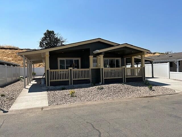 Here's a new listing #62 in popular Mountain View Estates, a 55+ community. Mountain View Estates is still owned by the local family that developed it in 1987. 21 homes of the 164 homes survived the Alameda Fire of 2020. The park is being restored & is now welcoming new and returning residents to this vibrant community. There's a new dog park and mailbox kiosk with parking at the entry. This brand-new Skyline 2 bedroom, 2 bath home is just the right size. A deep front porch makes taking in the views a pleasure. The large main bedroom runs across the back of the home. Double vanity in the bathroom with a step-in shower. The kitchen & living area are in the front with views of the neighborhood. There are granite counters & plenty of cabinets to please the cook. You've got plenty of space for your cars under the carport. Vinyl fencing & drought tolerant landscaping included along with sewer & trash. One small pet up to 25 lbs allowed. Interesting? You bet!