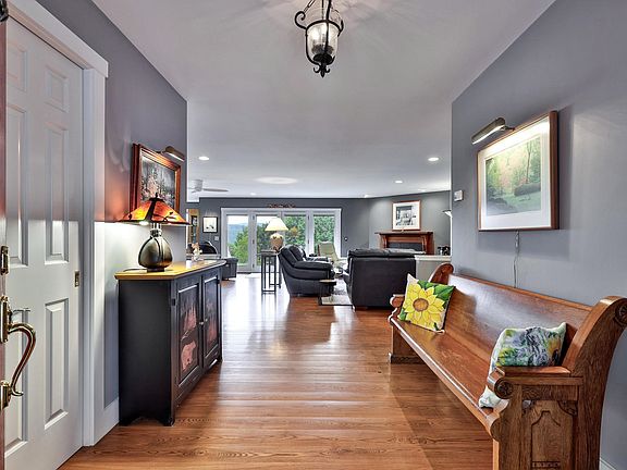 Nestled on a hilltop above scenic Music Mountain Road, this exceptional architect-designed home offers a private, sunny setting with breathtaking long-range views. The open floor plan provides one-level living ideal for every lifestyle, with radiantly heated white oak floors, a striking carved-oak mantel fireplace, and French doors framing the mountain panorama. The chef’s kitchen features high-end appliances, gleaming granite counters, elegant fixtures, LED lighting, and a spacious island with seating for four. The unique H-shaped layout separates the primary suite from the guest wing for privacy and comfort. The primary retreat includes a five-section bay window with stunning eastern views, radiant heat, a minisplit system, and a luxurious bath with double vanity and walk-in tiled shower with rainfall and multi-jet features. The guest wing offers two bedrooms, a full bath, and access to a massive basement for storage or expansion. Additional highlights include an oversized two-car garage, mudroom/laundry with new LG appliances, composite decking, vinyl siding, standing seam roof, and a 12kW standby generator. Manicured landscaping and mature perennials complement the spectacular setting, with Fanny Meadow Road bordering the property for direct trail access. An extraordinary mountain oasis, centrally located in the heart of Vermont’s Green Mountains—schedule your private showing today.