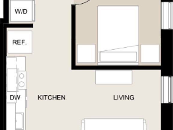- Exterior features: Across the street from the BioMed Center, Internet included in rent, Large Windows, Pet Washing Station, Secured Entry, TV Lounge