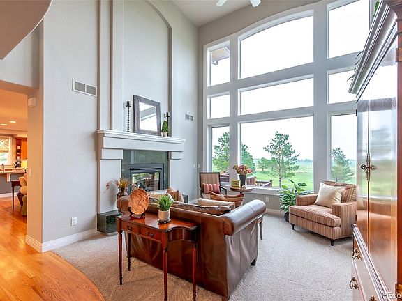 Nestled on a sprawling 5-acre lot in the Sky Rim neighborhood of Parker, this stunning custom built property offers an unparalleled opportunity for serene countryside living combined with modern luxury. As you approach the home, you'll be greeted by a huge covered front porch, inviting you to sip your morning coffee or to relax with a good book. Step inside and be greeted by a grand foyer, where natural light cascades through large windows, perfectly showcasing the undisrupted views. The spacious living room beckons you to unwind, featuring a cozy two-sided fireplace, and just off the entrance, a stylish home study complete with built-ins shares the same panoramic view. Continue into the heart of the home to find an updated gourmet kitchen equipped with stainless steel appliances, new quartz countertops, breakfast bar island and walk-in pantry, as well as beautiful bay windows framing the attached morning room. Appreciate the thoughtful design of the living areas offering a central workstation, plus generous butler’s pantry seamlessly connecting the kitchen and elegant dining room. The upper level features a luxurious primary suite; a private retreat with a spa-like ensuite bathroom, double-sided fireplace and walk-in closet. Wake up to breathtaking vistas of the verdant landscape and savor tranquil mornings from your own oasis of comfort. Outside, the two-level deck is an entertainer's paradise, ideal for hosting gatherings or enjoying quiet evenings while taking in an epic Colorado sunset. Beyond the boundaries of your property, discover the Sky Rim neighborhood and its access to miles of hiking and biking trails, making every day feel like a getaway. Parker offers an exceptional quality of life, in which you can enjoy local boutiques, gourmet restaurants, and community events while still being within easy reach of the Denver metropolitan area. Don't miss your chance to own this breathtaking estate, a wonderful place to create new memories with friends and family.