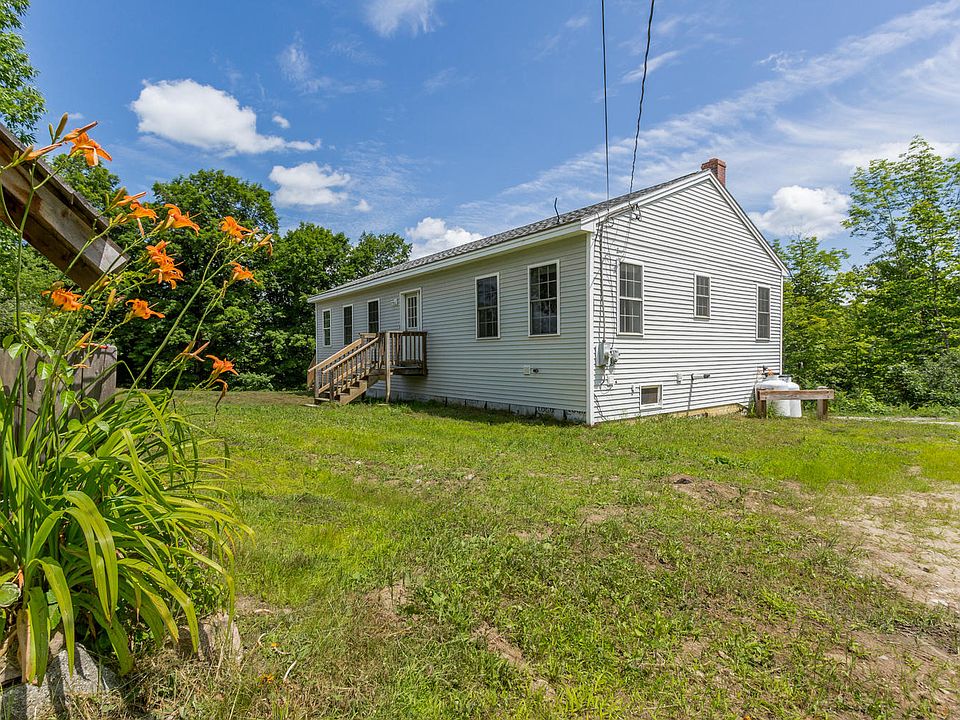 The charm of the country, the comfort of quality construction and the convenience of simple, single story living. Enjoy the privacy of 5 acres with pastoral views of woods, fields, stone wall, fruit trees & sounds of nature. Well built Interlocking Concrete Form building provides increased insulation for high energy efficiency heating! Air exchange system provides continuous fresh air to the home. A light-filled open concept kitchen, dining and living area. Master bedroom with two closets and full bath including a large jetted tub. 2 additional bedrooms and full bath. Freshly painted interior! Deck off dining area to enjoy the outdoors. Open sunny yard offers space to establish graceful gardens. 2 car attached garage underneath. High efficiency tankless water heater. Terrific potential for the partially finished space in walkout, daylight basement with radiant heat and plumbing for an extra bathroom. A lovely house in a beautiful setting waiting for you to call it your home sweet home!