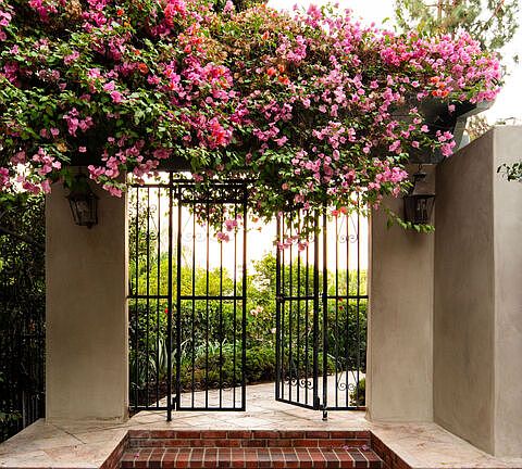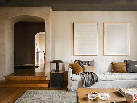 Rising behind bougainvillea-draped gates, 333 N San Rafael is a Mediterranean home in Pasadena's San Rafael Hills, transformed through a three-year renovation by Tatum Kendrick Design that layers historic charm with intentional, contemporary detail. A brick and stone front courtyard introduces interiors anchored by original parquet flooring and arched passageways, creating a sense of rhythm and continuity throughout. Limewashed-plaster walls, custom oak millwork, and carefully selected lighting enrich the palette. The living room, featuring painted beams and a custom fireplace, blends vintage character with comfort, while the dining room is framed by a curved window and sculptural brass chandelier, an inviting backdrop for gatherings. A den, media lounge, and library-style workroom extend the home's versatility, offering distinct areas for daily living and entertaining. At the center of the house, the kitchen was conceived as the heart of the home. A burl-wood island with integrated brass sink anchors the space, complemented by walnut cabinetry, marble counters, a built-in coffee bar with reverse osmosis water filter, dual walk-in pantries, and a full suite of custom storage. The AGA induction range pairs with a concealed Monogram hood and Waterworks fixtures, while a curved breakfast nook with custom banquette seating creates a cozy place to begin and end the day.Upstairs, the bedrooms carry the same level of detail. The primary suite features a fireplace and an abundance of natural light, accompanied by an en-suite bath that offers a steam shower with dual shower heads, marble accents, dual vanities, and towel warmers. Secondary bedrooms are equally considered, with custom hardware, artisan tile, and thoughtfully layered lighting. Throughout, details such as a powder room wrapped in Zak + Fox wallpaper with a Calacatta Viola marble sink, a lilac marble bar, a fully appointed laundry designed with equal attention to storage and finish, and a custom plaster handrail elevate the everyday. Outdoors, the property unfolds as a series of intimate and expansive moments. Courtyards, patios, and multi-layered stone paths wind through lush landscaping including citrus trees, leading to spaces for alfresco dining and entertaining beneath trellised greenery. A spa is tucked into the garden for evenings under the stars, while a separate structure offers flexibility for an art studio, gym, or additional office. Every angle reveals a sense of discovery, creating an atmosphere that feels both private and enchanting. Positioned in the sought-after San Rafael neighborhood, the home enjoys hillside seclusion with views of Downtown Pasadena while being moments from the Rose Bowl, Old Town Pasadena, and the neighborhood's cultural landmarks.