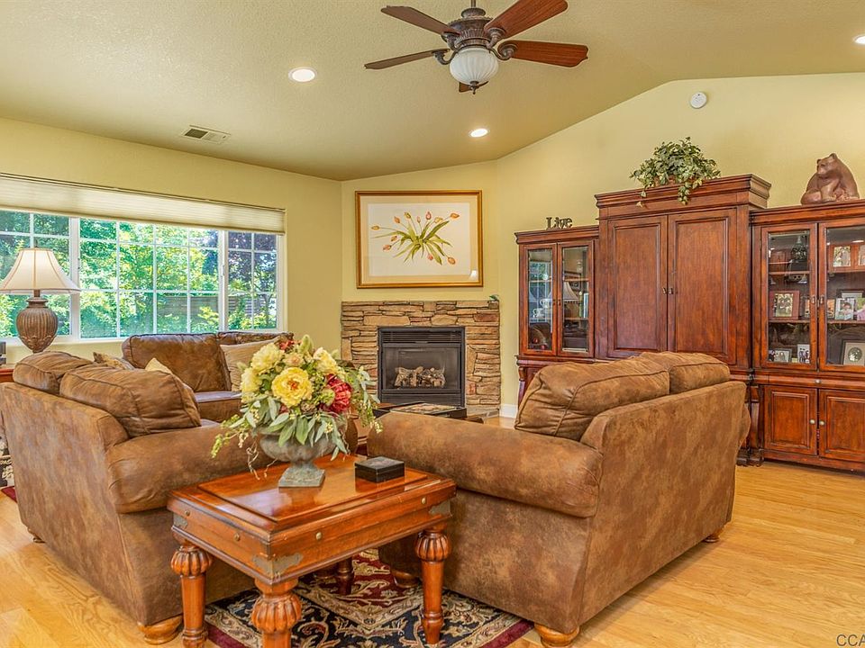 Great location near downtown Murphys sit this beautiful home on almost a quarter of an acre. Features include 2201 sq.ft., 3 bedrooms, 2 baths, office, art studio or separate sitting room with outside access and with a covered deck. Nice backyard that is fully landscaped with automatic sprinklers. This custom built home offers a formal entry that enters into the Great Room with hardwood floors, a gas log fireplace, Gourmet kitchen with granite counterops, beautiful cabinetry, a GE monogram 6 burner stove, All stainless steel appliances. Large pantry and also a very nice laundry room. The master suite is large and offers access to the backyard from the sliding glass doors. The master bath has a jetted soaking tub and a separate large shower. Two large guest bedrooms, with one leading into the art studio, which could be a sitting room for this bedroom. It has a small gas log stove and a sink, plus access thru the sliding glass doors to a private covered deck with access to the backyard. This home offers level access, extra wide halls and doors. Come take a look, you won't be disappointed.