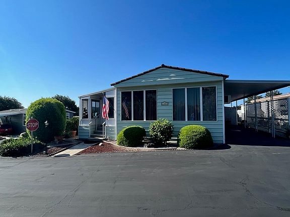 Corner lot on the terraces with fantastic Hope Ranch and mountain views! Mid-century modern mobile home. Front living and dining room, spacious kitchen. Rear primary suite with views and attached bath. Bedroom 2 has had a den additional. LARGE sunroom with great views! Gated community for adults 55+ with pool, spa, golf course, clubhouse and private gym.