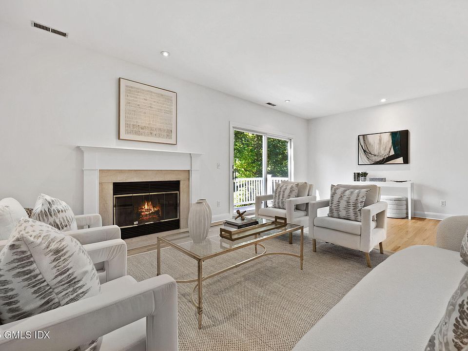 This light-filled three-level Riverside townhome features freshly painted interiors and a layout ideal for both entertaining and everyday living. The open living/dining area with fireplace flows to the eat-in kitchen, while a private balcony overlooks peaceful conservation land. The primary suite offers a private bath and large walk-in closet; a second spacious bedroom and hall bath add convenience. A vaulted library/den with built-ins and a third-floor loft provide flexible living space. With an attached garage, covered carport, and proximity to North Mianus Elementary, Eastern Middle, parks, shops, and Metro-North, this home blends comfort, character, and convenience.