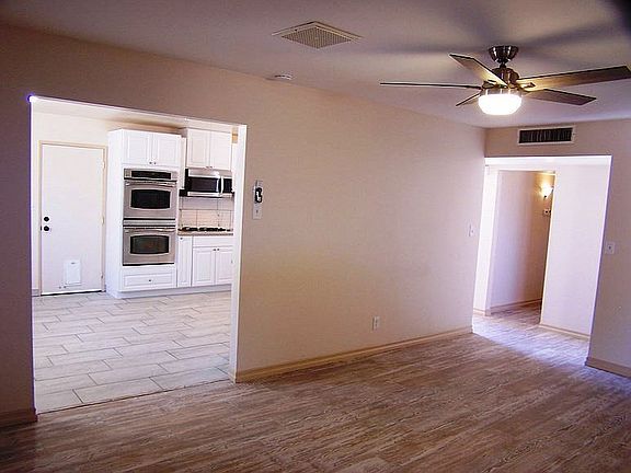 REFURBISHED PEG STREET HOME! MAJOR RENOVATIONS HERE! ALL NEW: light grey/brown wood flooring throughout, chocolate brown bedroom carpets, solid surface counters/integrated kitchen sink, backsplash, kitchen cabinets, faucets, dishwasher, microwave, and retractable door. In living room rich slatestone fireplace. Interior and exterior paint. Master bathroom with new shower tile, ceramic tile floor, vanity/sink/faucets. Hall bath with new ceramic tile flooring, jetted tub, mirror & fixtures. New front & rear doors, and some new interior doors. Dual cooling: Aerocool on roof, AC in ground. Newer Trane XE80 gas furnace mounted in hallway. Ceiling mounted industrial gas furnace in garage. Masonry walls on sides and rear. Wood deck and shed out back waitin' for ya! Room off living room has ducting and electric but is not permitted. Xeriscape in front with new decorative gravel and two sprouting shrubs! TURN-KEY HOME!! READY OR NOT!!