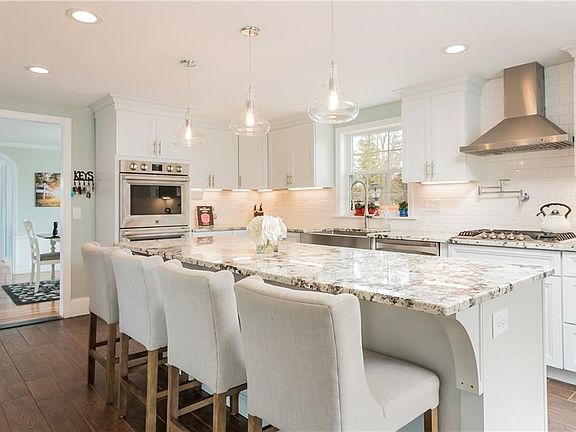 Stunningly renovated and spacious Cape in Greenwood Proper! Sun drenched kitchen with large center island, Granite counter tops and Stainless Steel appliances, Front to back Living room with hardwood floors, built-in shelves and brick fireplace. Formal dining room and Family room located right off the kitchen makes for the perfect house to entertain! First floor bedroom offers flexible options including In-law possibilities, office, or playroom. Additional living area with fireplace in lower level! 2 car garage with loft storage space, new windows, and ductless AC unit. All this nestled on a 15,000+ square foot lot!