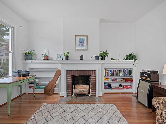 If you love the convenience of walking to restaurants, coffee shops, or the stadiums, this is just a short stroll away from the avenue. This two bedroom home combines modern updates with timeless character. The newly designed kitchen is a standout, featuring quartz countertops, sleek stainless steel appliances, and an undermount sink with a pull-down faucet for added convenience. A large high-top island offers ample storage and serves as a perfect gathering spot, while the built-in hutch in the dining area and new dining light add charm and functionality. With 9-foot ceilings, a brick fireplace with built-ins, the front bedroom exudes warmth and character. The first floor has beautifully refinished hardwood floors throughout, adding a touch of classic elegance to the living spaces.