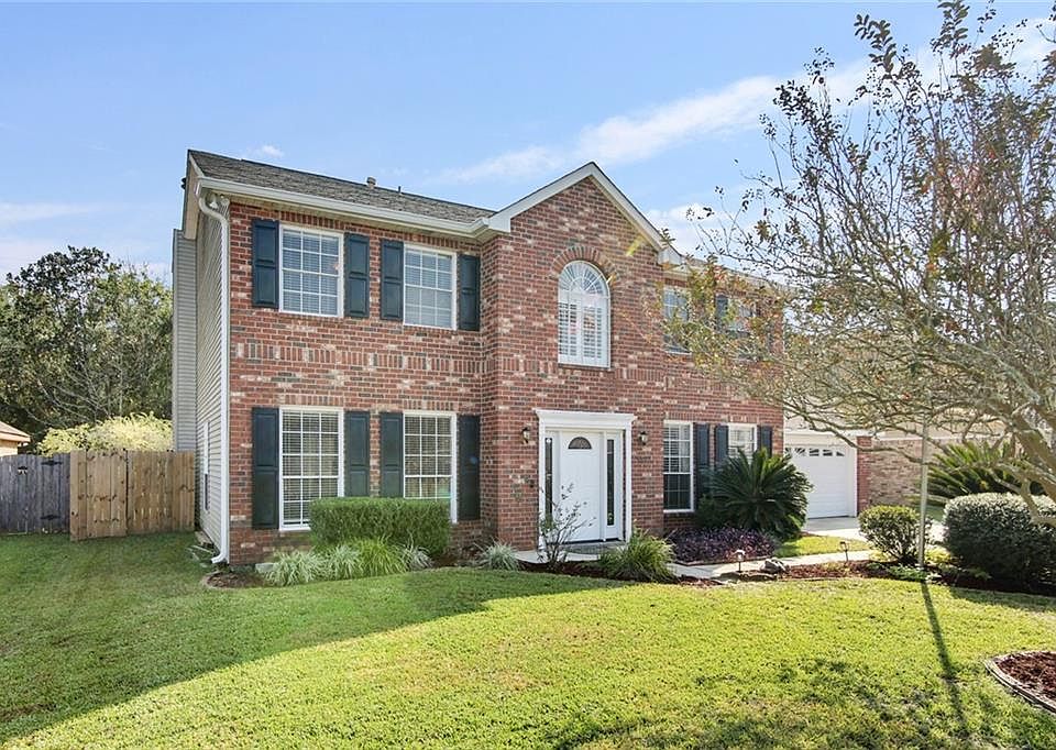 "100% Financing Available" Need a lil more elbow room? King size comfort can be found in this spacious 2 story home w/huge backyard & screened in patio. 2 story foyer entry, formal living, dining, den w/fireplace & bar area. Open kitchen offers center island, plenty cabinets & stainless appliances. Primary bedroom & bath has closet space, garden style tub & separate shower. Indoor laundry. Lush landscaping accents the front giving plenty of curb appeal. Easy commute. Free Home Warranty.