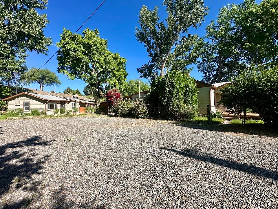 Two homes on desirable one acre lot includes two shares of water, features nice landscaping, large trees, small barn, orchard and pasture for horses. Homes are in good condition. Quiet peaceful country living, live in one, rent the other. Main home is 2 bedroom, 1 bath ranch style home. Back home is 900 sq. ft. 1 bedroom 1 bath plus bonus or hobby room. Back home has newer furnace and on demand water heater. Property also has a detached 24 x 25 double car garage.