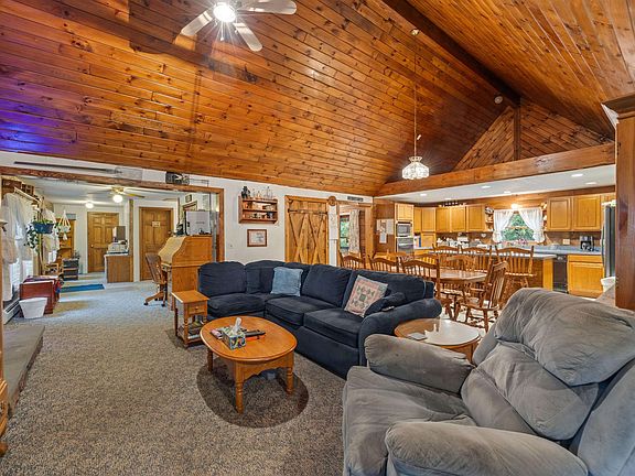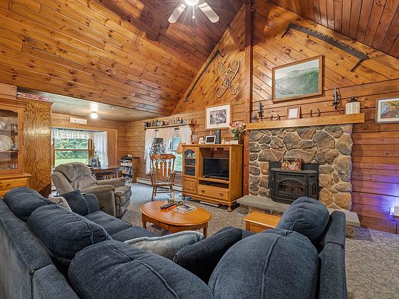 Discover the perfect blend of rustic charm and modern convenience in this stunning log cabin home, boasting nearly 2,000 square feet of beautifully designed first-floor living space. Nestled on a private 10-acre lot, this picturesque property offers a serene escape from the hustle and bustle of everyday life. As you step inside, you'll be greeted by an inviting open-concept kitchen and living area, ideal for entertaining family and friends. The spacious kitchen features ample cabinetry, counter space and a built in pantry. The living room, with its warm log walls and large stone fireplace offers a cozy atmosphere, perfect for relaxing by the fire after a long day. Or enjoy the peace and quiet of the outdoors while sitting on one of the homes 3 large porches.This home is equipped with a convenient first-floor laundry room, ensuring that chores are a breeze. A new roof installed just two years ago, complete with a transferable lifetime warranty, and a new furnace that was added in 2019 for efficient heating provide for peace of mind. The home also features plenty of space in the basement for additional bonus living area. Just minutes from lake Winnisquam (4 miles to Winnisquam Marina) and 10 miles to I93, this large private 10 acre home is located in the heart of the beautiful Lakes Region and all the fun and adventure it has to offer.