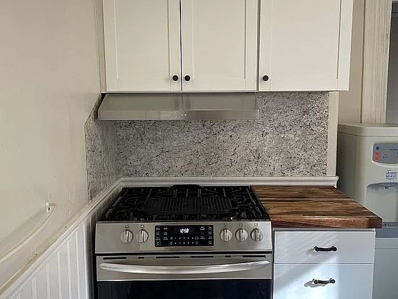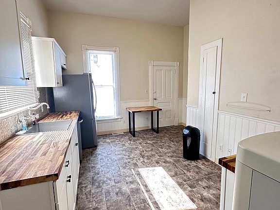 Updated Kitchen: The large kitchen features custom butcher block countertops, a walk-in pantry, and ample storage space for all your cooking needs.