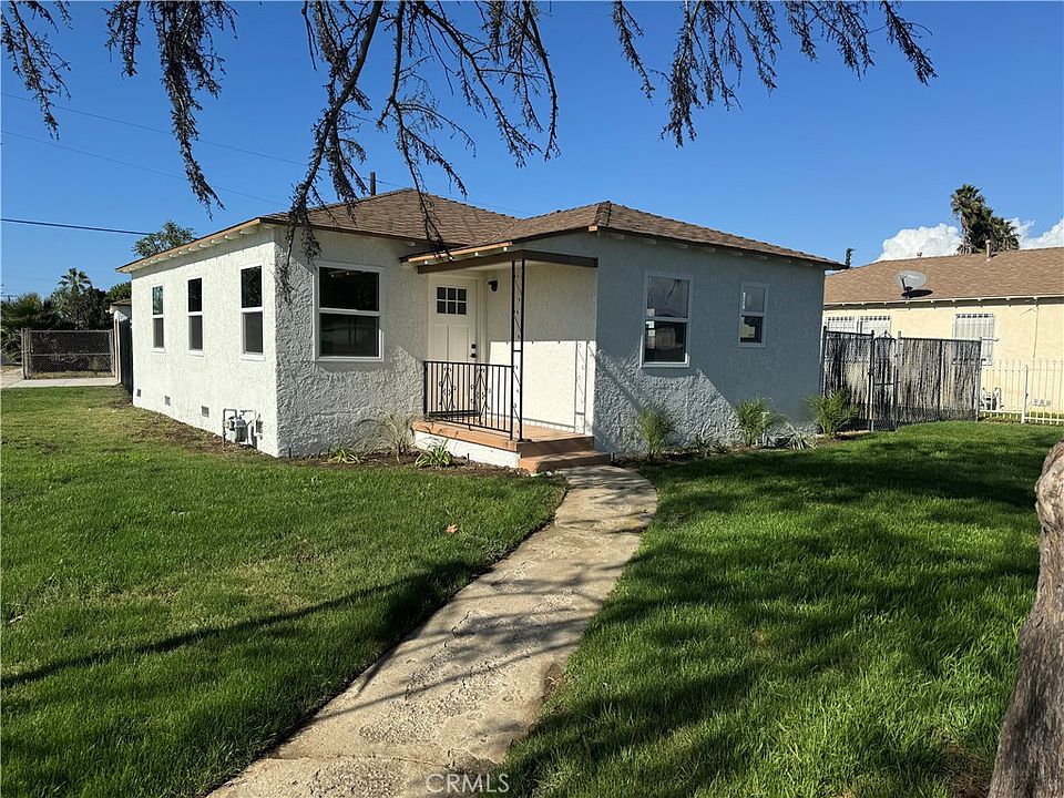 Welcome to this beautifully remodeled 3-bedroom, 1-bathroom home situated on a desirable corner lot with exceptional privacy—no neighbors to the back or on three sides and just one adjoining neighbor. This charming property has been updated from top to bottom, featuring a brand-new kitchen with modern cabinets, a stainless steel stove, microwave, and dishwasher, as well as stylish laminate flooring and energy-efficient recessed lighting throughout. The bathroom boasts a fresh makeover with a new tub, vanity, and sink, while the home also includes new interior and exterior doors, a heater, and an upgraded electrical panel. With its spacious lot offering ample potential for outdoor enjoyment or the addition of an ADU (Accessory Dwelling Unit), this home is perfect for those seeking modern comfort and room to grow. Show it today and let your buyers fall in love!