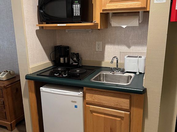 The Mountainside Inn is the most affordable accommodations in Telluride, located at base of the ski area just steps from Lift #7. Mountainside #315 and 317 are standard hotel rooms with kitchenettes on the upper level of the 300 building. The property is located across from the free Galloping Goose shuttle and San Miguel River trail that allow guests easy access to Historic downtown Telluride year round. Hotel rooms offer access to a common outdoor hot tub and complementary wireless internet service. Mountainside Inn guests also have access to charcoal grills, bike racks, limited courtyard parking, and coin-operated laundry facilities. 315 has new flooring and 317 flooring is being replaced this fall. Mountainside recently has a new roof on all buildings.
