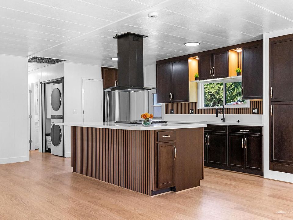 Welcome home to this stunningly 55+ and over community refurbished double-wide mobile home, blending modern upgrades with comfortable living. This spacious residence features a brand-new heating and cooling system, and double-pane windows throughout for improved energy efficiency and natural light. Step into the fully updated kitchen, showcasing brand-new cabinetry, elegant quartz countertops, and all-new stainless steel appliances including a stove, dishwasher, refrigerator, washer, and dryer everything you need is already here! Enjoy new flooring throughout the home, giving each room a clean, fresh feel. The updated plumbing and new water heater add peace of mind and long-term value. Both bathrooms have been tastefully remodeled, with one featuring a luxurious soaking tub your perfect private retreat. This home truly has it all: modern amenities, updated systems, and stylish finishes throughout. Financing available ask the Listing Agent. First 8 months space rent paid.