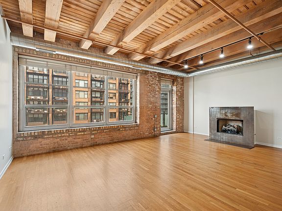 Spacious West Loop Timber and Brick Loft with Garage Parking Included. Freshly painted throughout, this one-bedroom apartment provides a large open living/dining/kitchen with ample room for entertainment. The steel surround encompasses a gas fireplace, perfect for the winter evenings. The island kitchen provides room for bar stools and an additional dining table. A spacious balcony overlooks the character of the surround neighborhood with great Western exposure. The expansive bedroom features a wall of closets with an additional utility closet across the hall, housing the in-unit washer and dryer. 333 S Des Plaines is professionally managed with 2 passenger elevators and a large freight elevator; exercise room; bike storage and on-site parking. Unit 504 includes a garage parking space located on the first floor.