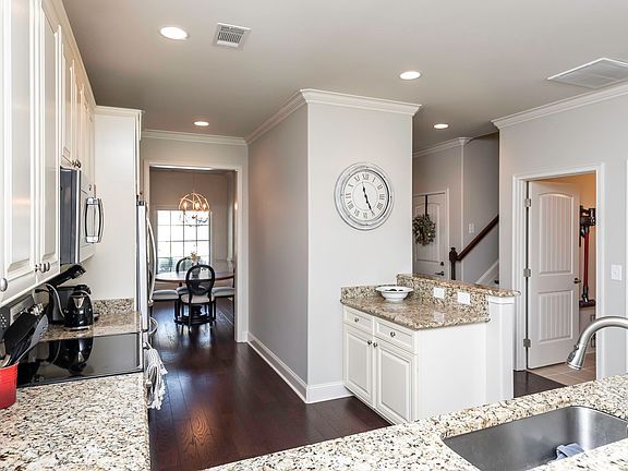 Welcome home to this beautiful townhouse. This home features four bedrooms and two and a half bathrooms, with an additional bonus room. When you first enter this home you will notice 9+ foot ceilings, wide plank hardwood flooring, and neutral paint. To the left you will notice the dining room with detailed picture molding, a large window, and crown molding. The dining room flows nicely into the bright kitchen. The kitchen features beautiful white cabinetry, granite countertops, stainless steel appliances, an eat at bar, and recessed lighting. The kitchen is open to the living room, perfect for entertaining. The living room boast pretty of natural light, a gas fireplace, and recessed lighting. The master is located on the main floor and features neutral paint and carpet, double vanity, large shower, and walk-in closet. Upstairs is very spacious and features three additional bedrooms, a full bathroom, and a flex/bonus room with endless possibilities. Make sure that you do not missed the screened in porch with a view of the well landscaped backyard. This end unit townhouse is a rare find with a gated subdivision that includes lawn maintenance, lights, and a pool! Call to schedule your showing today.
