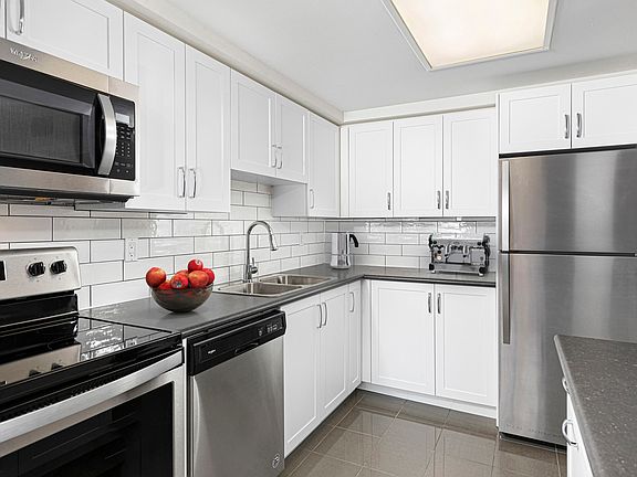 Stainless-steel refrigerator, stove, microwave, and dishwasher (select suites)