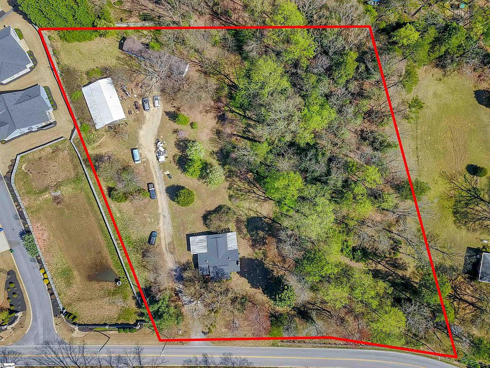 This almost 3 acre homestead is minutes to shopping and dining on Woodruff Road; with 2 access points to Woodruff Road less than 1.5 miles away. One is via Smith Hines Road on the East side of I-385 and the other is via Miller Road on the West side of I-385. What a location to build your dream home or homes! Here are multiple homesite possibilities on the property. You can live in the 2 BR/ 2 BA home or the 3 BR/2BA mobile home while you build. Beautiful estate homes are being built close by. Or you can bring several families; there are two homes already on this property so you can enjoy togetherness but with privacy. The brick home has two bedrooms and a flex room that is currently being used as a bedroom. (The closet is just outside). This room has multiple uses, it could be a craft room, office or den. There is a wide hall way that also has space for a sewing table or small desk. A large covered deck and covered front porch makes you feel as if you are in a country setting but are just minutes to downtown Greenville. Recent updates include Luxury Vinyl Plank flooring and a new roof and HVAC in 2019. The 1994 (16x76) MH needs work but is habitable. If you are a car enthusiast, a 23x45 workshop will be of interest. Two sliding doors will accommodate your prized possessions. There are pull down stairs to a full attic for great storage as well. A fence runs along the entire left side of the property and one is across half of the back for increased privacy and a little stream runs through the property. What a great setting for your dream home! Investors and Developers, you will want to check this one out!