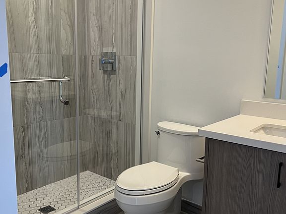 Custom kitchen cabinetryQuartz countersWide-plank flooringWindow blindsBuilt-in closet organizersPrivate beach