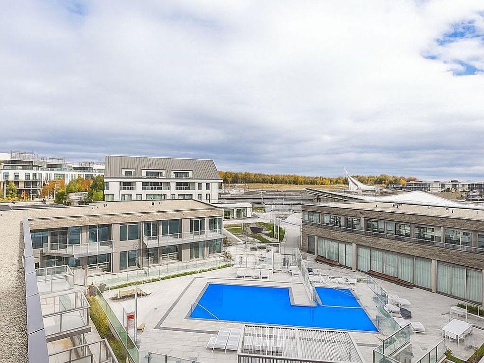 Welcome to resort luxury lakeside living in this beautifully upgraded 2 bedroom, 2 bathroom condo in the heart of Friday Harbour Resort. The newest Sunseeker building offers Golf simulator, games room, pet wash, theatre, events room, lounge, outdoor pool and hot tub. Positioned to overlook the resort style courtyard pool, hot tub and marina, this suite offers a serene backdrop and year round vacation vibes. The condos interior features upgraded cabinetry and hardware, custom walk in closet organizer primary bedroom with white finished shelving, extended full height kitchen backsplash, upgraded quartz countertop, upgraded flooring with a modern flow, upgraded tile and glass shower enclosure in ensuite, battery operated roller shades throughout. The open concept kitchen and living space provide the perfect area to unwind or entertain. Step out to your private balcony and enjoy direct views of the pool, hot tub, landscaping and marina a rare sought after exposure. Friday Harbour resort amenities include: Marina and boardwalks, restaurants, cafe, shopping and seasonal outdoor market. Starbucks, LCBO, Grocery on site. Beach club and lakefront areas. Underground parking and locker. Hiking and Nature trails, fitness centre, winter skating. This is a true resort lifestyle--whether your are relaxing by the pool, enjoying dinner along the boardwalk or taking in the waterfront trails. Available unfurnished or furnished.