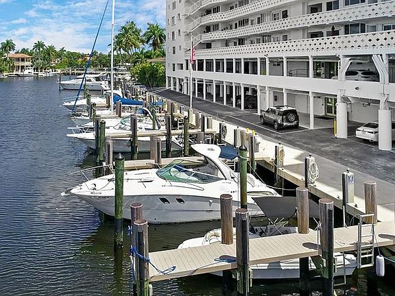 Views! End Unit! Dockage available now! 2 Bed 2 Bath. Unobstructed views in 3 directions including Beach Hotels, Lake, City Skyline, Port, Las Olas Isles, Intracoastal and beyond. Remodeled with outstanding taste. Dramatic black terrazzo tile reflects sunlight from every angle. Miele & Sub Zero appliances headline inspiring large home sized chefs kitchen with mesmerizing view of the Lake and Port. 2 Balconies. 1 Large with shade off living room floor to ceiling glass wall. 2nd Smaller private off Master. 1/2 Block off famed Las Olas Blvd - walk to the beach or head to the shopping & restaurants. Large dogs welcome. Maintenance includes Reserves, A/C, hot water, HD cable, HBO, WIFI. 40&50 Yr Inspections. Newer well protected marina at $11/ft 50' max. 15 minutes at idle speed to the inlet.