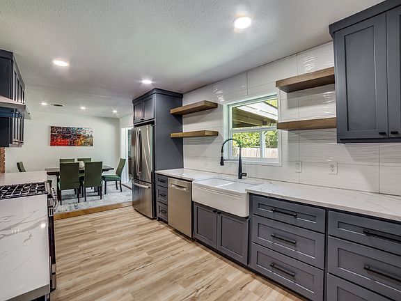 Modern updatesGas stoveNew vinyl plank flooringBeautifully refinished hardwood floorsQuartz countertopsFarmhouse sinkAll new kitchen