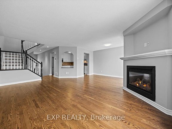 Welcome to this beautifully maintained 3 bedroom, 2.5 bathroom brick townhouse featuring a single garage and a bright, finished basement with large storage area. Beautifully refinished hardwood floors and staircase in 2025. The spacious kitchen offers plenty of counter space and cabinetry-perfect for family meals and entertaining. The open-concept living and dining area includes a cozy gas fireplace and a patio door leading to a fully fenced, sunny west-facing backyard ideal for relaxing or hosting summer barbecues. Upstairs, the primary bedroom boasts a walk-in closet and a private ensuite bathroom complete with a soaker tub and separates shower. The lower level features a welcoming recreation room with a large window, filling the space with natural light-ideal for a home office, gym, or play area. Recent updates include a new roof, fresh paint, and new carpeting, making this home move-in ready. Conveniently located close to schools, parks, shopping, and transit, this townhouse offers comfort, style, and functionality for today's modern living.