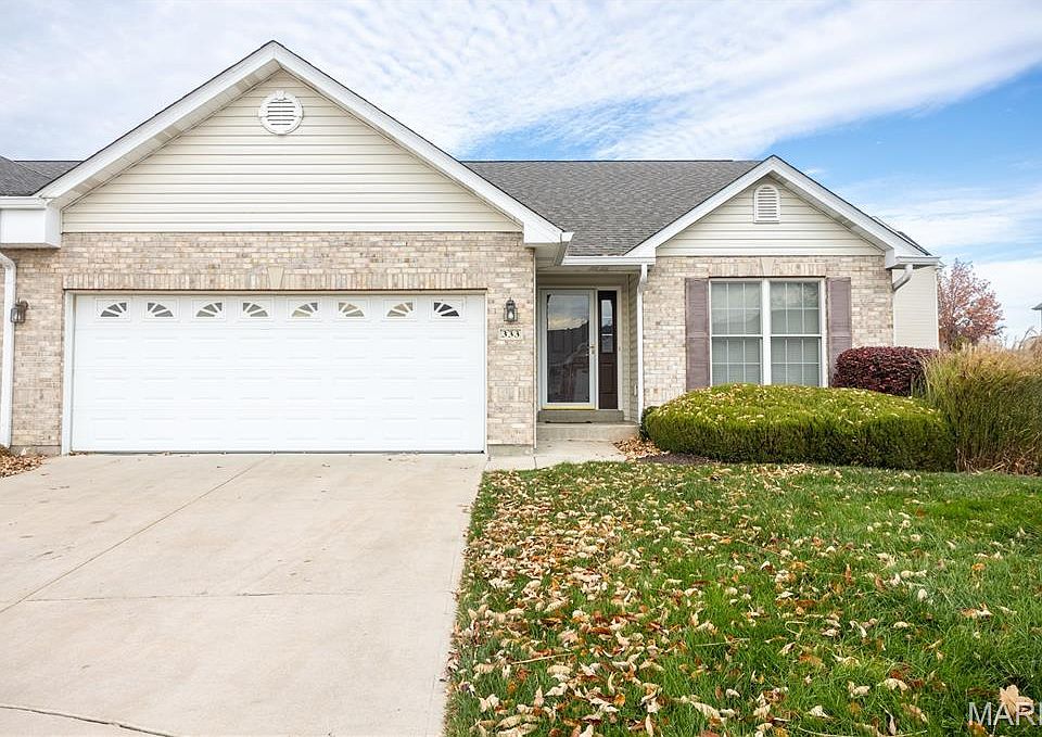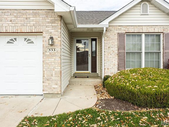 Open House 12-2pm this Sunday. Looking for a new place before Christmas? Look no further than 333 Villa Tuscany located at the end of a cul-de-sac. Walk into the inviting foyer that opens up to the dining room and living room. Cozy up with the gas fireplace and vaulted ceiling. The main bedroom has a full bath with shower and walk-in closet. The second bedroom is next to the guest full bath with shower and tub. The eat-in kitchen has a breakfast bar and Quartz counter tops. There is a large pantry and main floor laundry that leads you to the 2 car garage. The lower level is partially finished with a great family room and full bath with shower. There is a huge walk-in closet for all those extra clothes and whatever you need to store. There is a partially finished room that is just waiting for drywall and a closet to make it another bedroom. The unfinished area is great for storage that includes a sump pump. This condo is close to all that O'Fallon has to offer. Just wait until July when you can watch the fireworks from your own deck and never have to cut your grass again. Make an appointment now before the sign says SOLD.