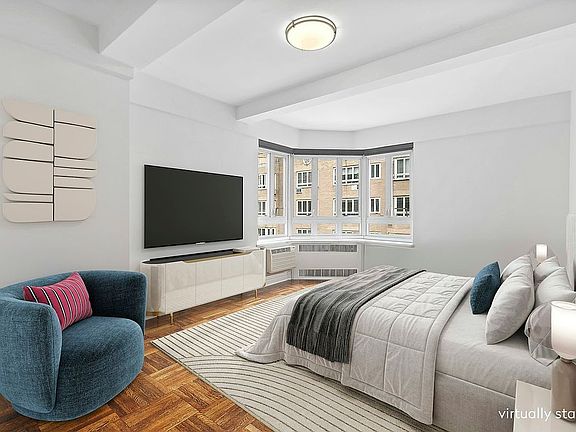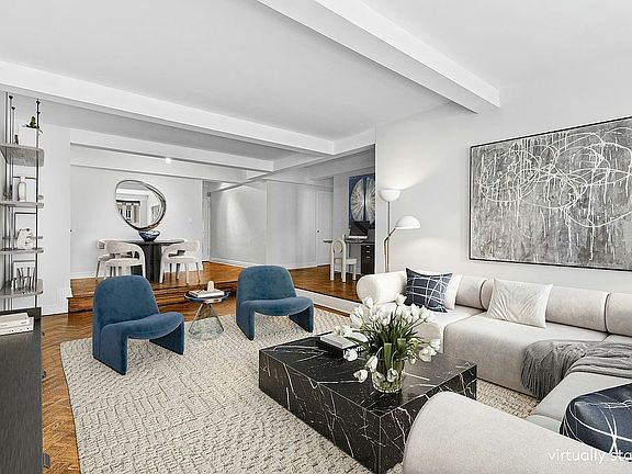 This extremely spacious and highly coveted premium 1 bedroom home is now available at The Westmore, an Art Deco gem located half a block from Columbus Circle. Flexible and easy Condop rules are very investor-friendly, allowing for unlimited renting from day 1 and no board interview. Welcome to this sophisticated and highly desirable layout boasting a sunken Living Room, emblematic of the Art Deco aesthetic. With a third bay window and gorgeous hardwood floors throughout, the living room is the ideal setting to kick back and relax.