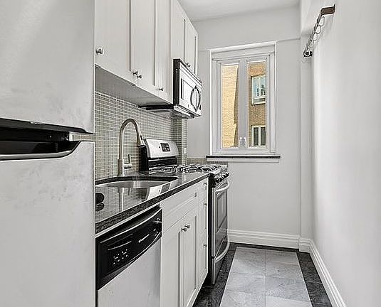 The windowed kitchen has been modernized, featuring an updated sleek stone countertop, tile backsplash and full sized stainless steel appliances. Adjacent to the kitchen you will find a roomy home office area for all of your work from home needs. The elevated dining room is spacious and idyllic for all your casual and formal dining desires. Two large closets in the dining room accommodate all your storage needs. The oversized bedroom features large corner bay windows overlooking the Westmore's beautiful gardens and can comfortably fit a king-sized bed in addition to a seating area plus additional 2 large closets.