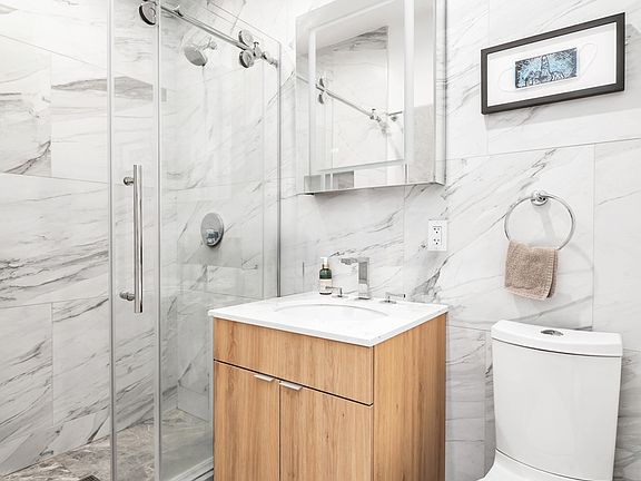 Marble Bathroom with Heated Floors: The newly designed marble bathroom features an LED-lit medicine cabinet and heated floors, adding a touch of luxury to your daily routine.
