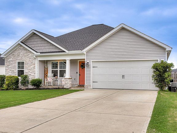 Welcome home to Sweetwater Landing in the highly coveted Merriwether District of Edgefield County, conveniently located near I-20, shopping, and restaurants. This cute home welcomes guests with a cozy rocking chair front porch. The front door opens to a large living room with extra space for a small office setup. This open/split floor plan highlights an eat-in kitchen, stainless steel appliances, walk-in pantry/laundry room combo, granite countertops, and LVP flooring! Additional features: 2-car garage, fully landscaped, sprinkler system, privacy fenced yard, the covered back patio is great for entertaining, and the above ground pool stays! Qualifies for 100% USDA financing! A great home in a great location!