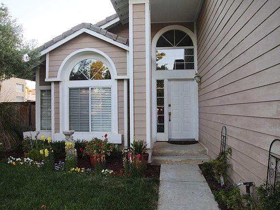 Welcome home to this beautiful two-story beauty featuring 3 bedrooms, 3 bathrooms and 1,813-SqFt. Property has a 3-car garage. The home has a family room with a fireplace and a French door that leads you outside. Open to the family room is a bright kitchen equipped with nice appliances, granite countertops and plenty of cabinet space. Bedrooms have carpet flooring and ample closet space. The primary bedroom has a private bathroom with a double sink vanity, a soaking tub, and a stand-up shower. Convenient laundry room with built in cabinets. The backyard features the perfect setting to relax or entertain. The yard offers privacy, greenery, and lots of space. There is a covered patio, plus a beautiful step-up patio that has a pergola and a tranquil pond with a water fall that sets the perfect tone for you and guests. Property is located near parks, schools, dining options and markets. Property has solar panels.