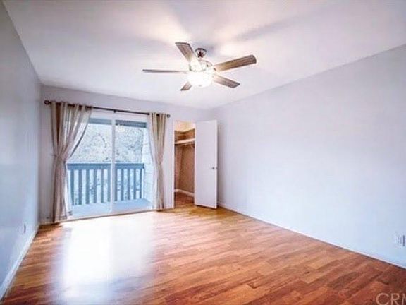 The bathroom has a newer vanity and tile flooring. Both bedrooms are incredibly spacious, offer ample storage with walk-in closets and have blackout curtains. The master bedroom offers deck access through a sliding glass door with views of surrounding hills and a remote controlled ceiling fan.