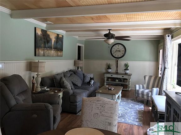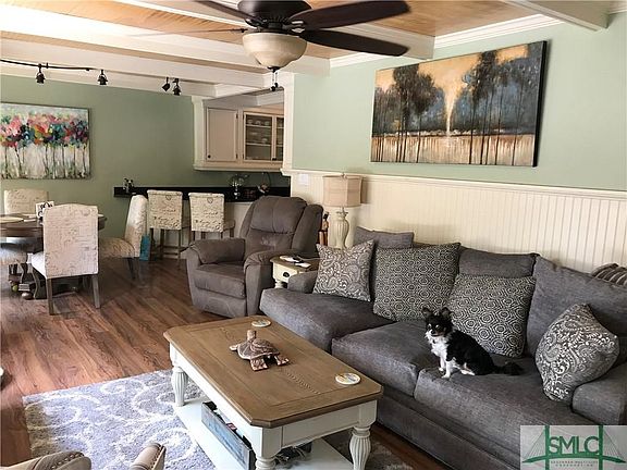 3 bedrooms, 2 baths, renovated Thunderbolt cottage with the Wilmington River just two blocks away. Kitchen features custom cabinets, granite counter tops, stainless steel appliances and a breakfast bar. Laminate wood flooring in main living areas and master bedroom. Carpet in the spare bedrooms and tile floors in bathrooms. Landscaped front yard with the addition of a circular driveway. Brand new inviting red front door and composite wood decking on the rocking chair front porch. Light and airy living, and dining room. French doors in the master bedroom suite lead outside to the large back deck with screened in porch. Storage room and a one car detached garage.