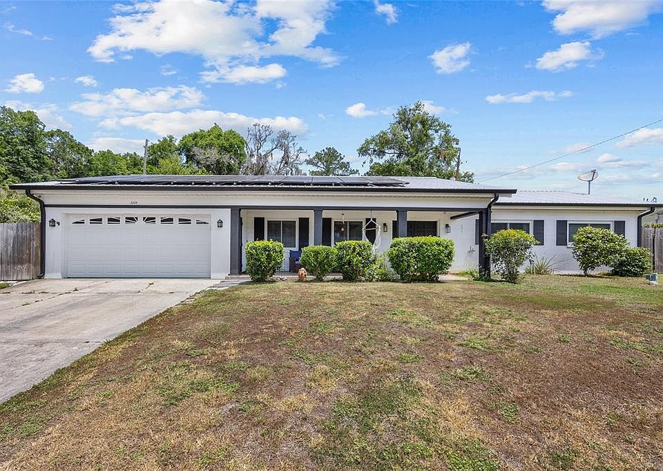Welcome to this stunning 4-bedroom, 2-bath concrete block home offering 1,771 sq ft of comfortable living space. The residence features luxury vinyl plank flooring throughout—absolutely no carpet for easy maintenance and modern appeal. The fully fenced backyard is an entertainer’s dream, boasting a large pool, spacious pool decking, a storage shed, and a cozy fire pit perfect for gatherings. Recent upgrades include a 50-year metal roof replaced in 2020, a new HVAC system installed in 2021, and all windows updated in 2008. Stay energy-efficient with solar panels installed in 2023, helping to keep electric bills at a fixed cost. Other improvements include a brand new water heater (April 2025), updated toilets, door hardware, light fixtures, outlets, switches, and pool decking. This home combines durability, modern updates, and outdoor paradise—ready for your next chapter!