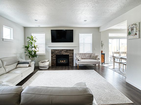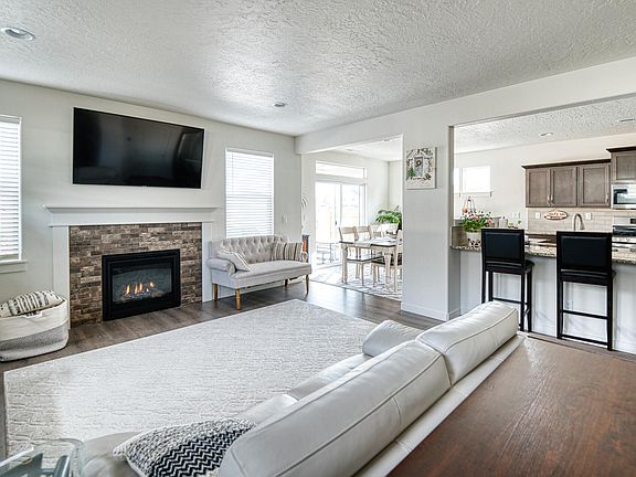Dedicated upstairs office with glass French doors and a closet offers the perfect space to work, create, or unwind. The open layout connects a beautifully finished kitchen, complete with granite counters, full tile backsplash, and an under-sink water heater to spacious living and dining areas designed for everyday comfort. Upstairs, the primary suite features a large walk-in closet and spa-style bath with double vanity and tiled shower. Two additional bedrooms offer flexibility for guests or family. Enjoy outdoor living on the extended covered patio with recessed lighting, gas BBQ hookup, and a line for a hot tub. A 4-foot garage extension, separate man door, and thoughtful upgrades throughout add both convenience and value. Clean, modern, and move-in ready, this home checks all the boxes.