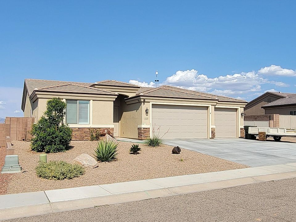 Don't wait for your new home! Come see this complete 2018 Desert Rose model home in Vista Bella. With a open and inviting living space this home has 4 bedrooms, 2 bathrooms, a 3 car garage with a over sized RV gate and site paring for all your needs. Granite counters and tile floors throughout the living spaces. Backed to a wash for additional privacy in the future this home is ready for it's new owner. Call today!