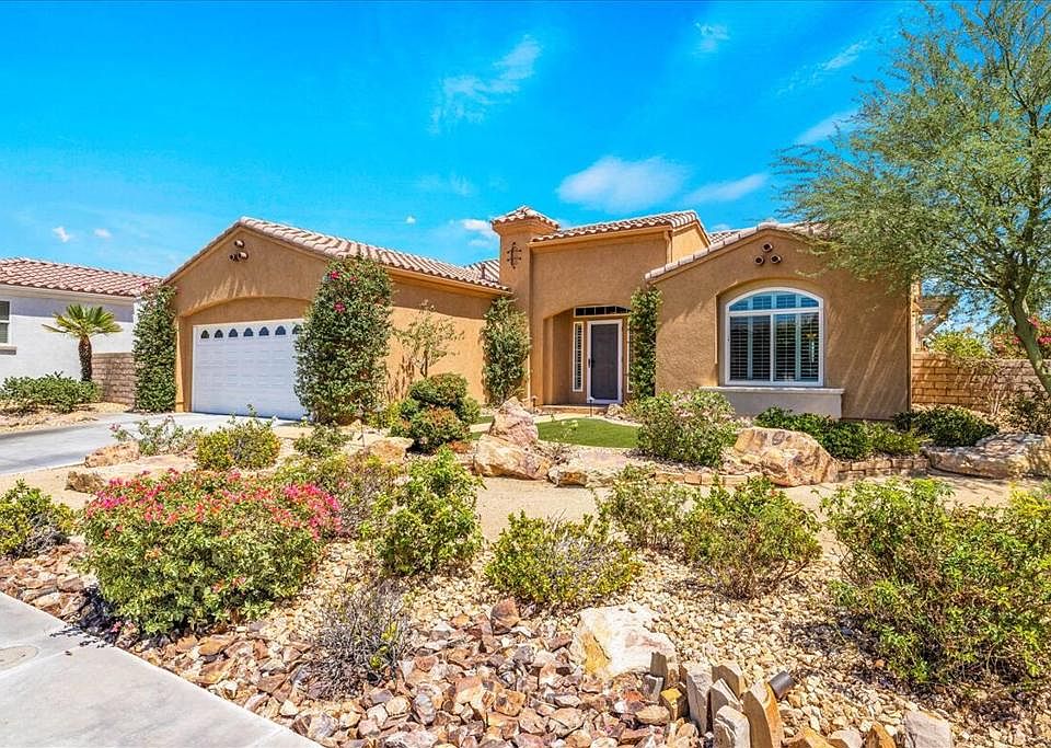 Discover the best of Palm Springs living in the coveted Four Seasons 55+ Gated Community. This 2,288 sq. ft., 3-bedroom, 2-bath home blends elegance & comfort, all framed by majestic mountain views.Inside, you'll be greeted by stunning tile flooring, updated thermopane windows & doors, and a Trane HVAC system with additional split AC for year-round comfort. The gourmet kitchen boasts Silestone quartz counters, pull-out shelving, newer stainless appliances, a spacious center island--plus a breakfast area and formal dining room. The large primary suite offers plush carpeting, a huge built-out walk-in closet, and a remodeled bathroom. Freshly painted interior & exterior in cool modern tones, the home also includes a whole-house water conditioner. Step to the private rear grounds for a tranquil water feature, low-maintenance artificial lawn, private putting green, mature fruit trees & lush landscaping. The garage impresses with epoxy flooring, built-in storage, rain gutters, and more. The Four Seasons ''Lodge'' is a resort-style clubhouse complete with full time staff, a ballroom, fitness & aerobics studios, game room, library, and endless social events. Residents also enjoy swimming pools, spas, tennis & pickleball courts, BBQ pavilion, and scenic walking trails--all designed to capture the active Palm Springs lifestyle. Low HOA's include Frontier fiber-optic internet. Just minutes from downtown Palm Springs' fine dining, designer shopping, world-class entertainment & top medical facilities. Experience the ultimate Palm Springs lifestyle where luxury & convenience merge as one.